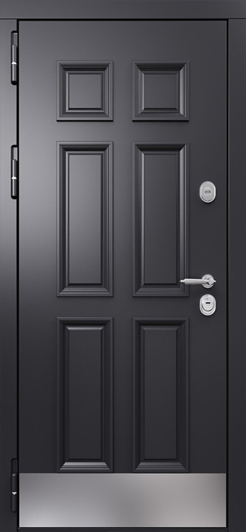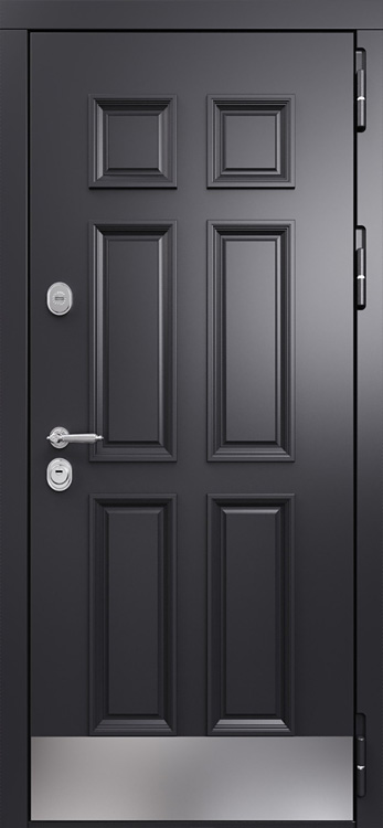 Входная дверь с МДФ №566 создана для тех, кто ценит прочность металла и уютный внешний вид в одном решении. Она одинаково хорошо вписывается в частный дом, квартиру или офис, подчеркивая солидность пространства и обеспечивая надежную защиту. Каркас и полотно собраны из профильных труб, усиленных ребрами жесткости, а стальной лист толщиной 2 мм гарантирует устойчивость к взлому и длительный срок службы. С обеих сторон дверь облицована МДФ панелями с ПВХ-покрытием, что делает поверхность более устойчивой к истиранию и мелким повреждениям, сохраняя привлекательность даже при интенсивной эксплуатации. Панели легко очищаются и не выгорают на солнце, благодаря чему дверь подходит и для уличной установки. Два контура уплотнения надежно защищают от сквозняков и посторонних запахов, а при необходимости можно дополнительно усилить конструкцию тепло- и шумоизоляцией. Модель №566 сочетает в себе сдержанный дизайн и функциональность, делая ее практичным выбором для самых разных помещений. Входная дверь с МДФ №566 от производителя: быстрое изготовление и монтаж в Зеленограде, индивидуальные размеры, широкий выбор материалов и фурнитуры, официальная гарантия до 10 лет.
