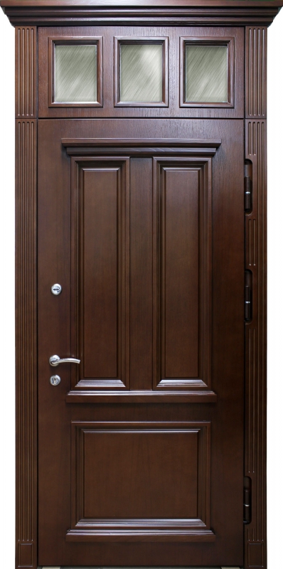 Дверь с сувальдным замком и фрамугой №34 идеально сочетает в себе стиль и надежность. Панель из натурального дерева, использованная как для внешней, так и для внутренней отделки, придает двери благородный и элегантный вид, делая её отличным выбором для помещений с классическим или современным интерьером. Каркас двери выполнен из профильной трубы 50х25 мм и усилен ребрами жесткости, что гарантирует прочность конструкции. Замки от производителей "Просам" и "Мосрентген" с тремя ригелями обеспечивают высокий уровень безопасности. Дверь оснащена уплотнителями с двумя контурами, что гарантирует отличную герметичность, а возможность замены замков и добавления кованых элементов делает её адаптируемой под любые требования. Кроме того, дверь можно дополнить зеркалом, стеклопакетом или видеодомофоном для еще большего комфорта. Входная дверь с сувальдным замком и фрамугой №34 от производителя: быстрое изготовление и монтаж в Зеленограде, индивидуальные размеры, широкий выбор материалов и фурнитуры, официальная гарантия до 10 лет.