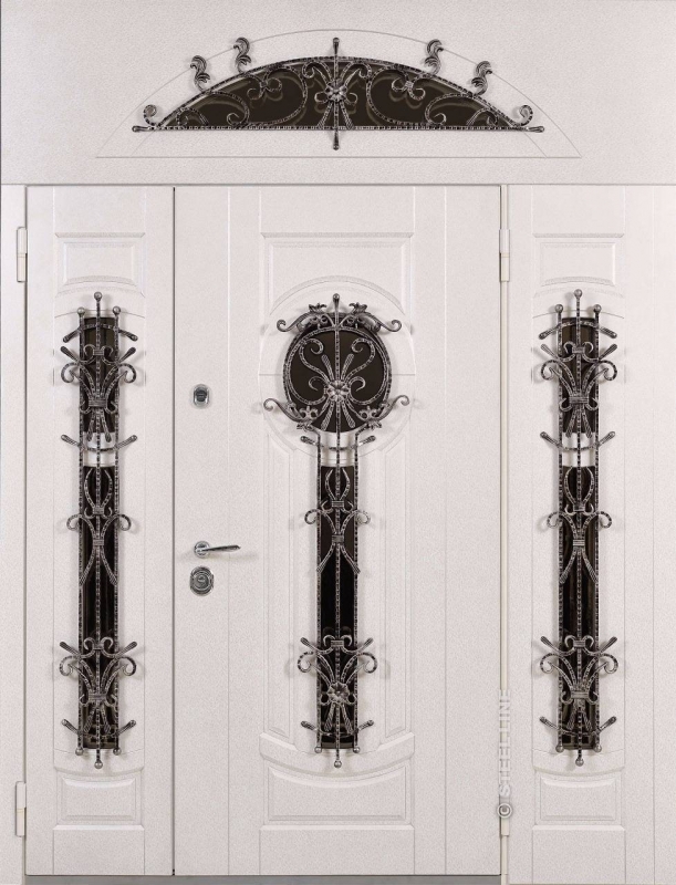 Входная дверь с кованой ручкой и фрамугой №6 представляет собой элегантное и надежное решение для тех, кто ценит не только безопасность, но и стиль. Эта модель идеально подойдет для оформления парадных входов в дома и офисы. Внешняя отделка из плиты МДФ придает двери современный и чистый вид, который сохраняется долго благодаря стойкости к внешним воздействиям. Благодаря профильной трубе с толщиной металла 2 мм и ребрам жесткости, конструкция двери гарантирует прочность и долговечность. Дополнительный элемент — кованая ручка, которая добавляет изысканности и подчеркивает высокий класс изделия. Стандартная комплектация не включает шумо- и теплоизоляцию, однако она может быть установлена по желанию. Резиновый уплотнитель с двумя контурами обеспечит хорошую герметичность, защищая от ветра и пыли. Подходит для установки как в частных домах, так и в офисах, привлекая внимание своим необычным и стильным дизайном. Входная дверь с кованой ручкой и фрамугой №6 от производителя: быстрое изготовление и монтаж в Зеленограде, индивидуальные размеры, широкий выбор материалов и фурнитуры, официальная гарантия до 10 лет.