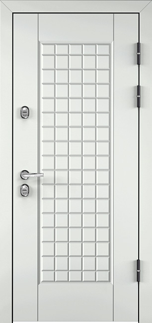 Белый цвет всегда символизирует чистоту и лёгкость, а на входной двери он ещё и подчёркивает современный вкус владельца. МДФ-плита с аккуратным вырезом «плитка» создаёт интересный декоративный эффект, благодаря которому строгая поверхность получает стильный рельеф и выглядит солидно как в частном доме, так и в офисном пространстве или городской квартире. Белая входная дверь МДФ с вырезом "плитка" в центре №532 изготовлена на основе прочного каркаса из профильной трубы с усиленными рёбрами жёсткости и металлическим листом толщиной 2 мм. Конструкция оснащена двумя замками российского производства — сувальдным Просам и цилиндровым Мосрентген, что обеспечивает надёжную защиту. При желании её можно дополнить зеркалом, коваными элементами, стеклопакетом или даже умными биометрическими замками. Такая дверь не только надёжна, но и способна стать выразительной деталью экстерьера или интерьера. Белая входная дверь МДФ с вырезом "плитка" в центре №532 от производителя: быстрое изготовление и монтаж в Зеленограде, индивидуальные размеры, широкий выбор материалов и фурнитуры, официальная гарантия до 10 лет.