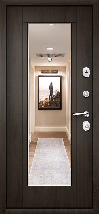 Сочетание зеркала и металла в одном изделии делает эту модель особенно удобной для современных интерьеров. Дверь входная металлическая с зеркалом внутри №46 предназначена для установки в квартиры, офисы и частные дома, где важна не только защита, но и комфорт использования. Внутреннее зеркало избавляет от необходимости дополнительных предметов мебели, экономя место и визуально расширяя пространство. Каркас собран из профильной трубы и усилен рёбрами жёсткости, а стальной лист толщиной 2 мм надёжно противостоит механическим нагрузкам. Накладки МДФ служат практичным и долговечным решением: они устойчивы к царапинам, не теряют внешней привлекательности и легко поддаются уходу. Два контура резинового уплотнителя уменьшают проникновение шума и сквозняков, а возможность комбинировать отделку позволяет подобрать исполнение под любой интерьер. Дверь входная металлическая с зеркалом внутри №46 от производителя: быстрое изготовление и монтаж в Зеленограде, индивидуальные размеры, широкий выбор материалов и фурнитуры, официальная гарантия до 10 лет.