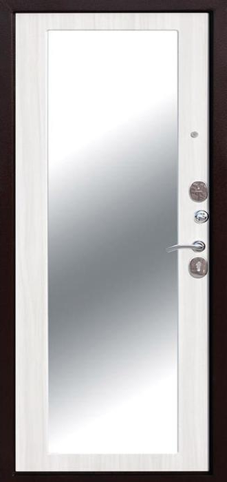 Сдержанный белый цвет придаёт модели лёгкость и визуальную чистоту, а зеркало внутри делает её особенно удобной для городских квартир и офисов, где важна каждая деталь интерьера. Белая входная дверь в квартиру с зеркалом №50 сочетает в себе функциональность и надёжность: прочный стальной каркас из профильной трубы и лист металла толщиной 2 мм обеспечивает защиту, рёбра жёсткости усиливают конструкцию, а два контура уплотнителей помогают снизить проникновение сквозняков и шума. Отделка из МДФ-накладок устойчива к царапинам и не теряет аккуратного вида даже при активной эксплуатации. Зеркальная вставка экономит пространство и делает коридор светлее, а наличие двух замков — сувальдного Просам и цилиндрового Мосрентген — обеспечивает дополнительный уровень безопасности. Белая входная дверь в квартиру с зеркалом №50 от производителя: быстрое изготовление и монтаж в Зеленограде, индивидуальные размеры, широкий выбор материалов и фурнитуры, официальная гарантия до 10 лет.