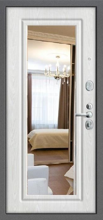 Белый цвет придаёт этой модели лёгкость и универсальность, а зеркало на внутренней стороне делает её особенно удобной для квартир и офисов, где важно сочетать практичность и эстетику. Дверь входная металлическая белая с зеркалом №51 изготовлена на основе прочного стального каркаса с листом металла толщиной 2 мм и усилена рёбрами жёсткости, что обеспечивает надёжность и долговечность. Плиты МДФ во внутренней и внешней отделке устойчивы к повреждениям и сохраняют аккуратный вид даже при интенсивном использовании. Два контура уплотнения помогают удерживать тепло и блокировать сквозняки, а пара замков — сувальдный Просам и цилиндровый Мосрентген — обеспечивают высокий уровень защиты. Зеркальная вставка экономит пространство и визуально расширяет коридор, делая дверь не только защитной, но и функциональной частью интерьера. Дверь входная металлическая белая с зеркалом №51 от производителя: быстрое изготовление и монтаж в Зеленограде, индивидуальные размеры, широкий выбор материалов и фурнитуры, официальная гарантия до 10 лет.