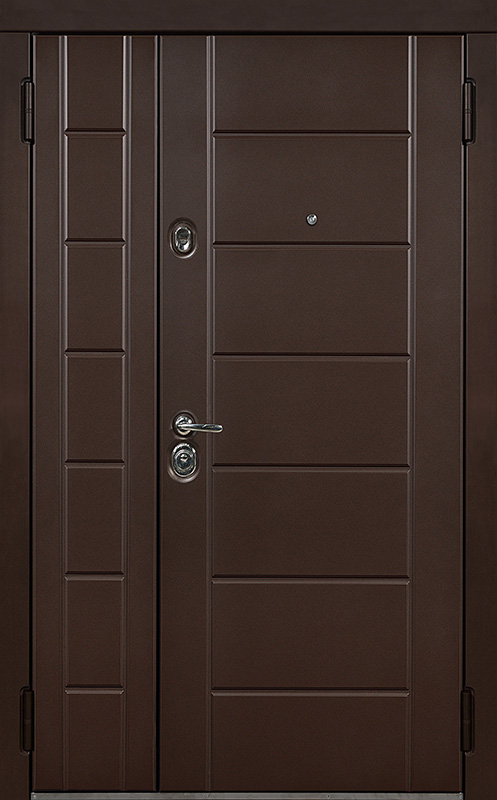 Двухстворчатая входная дверь в современном стиле хай-тек №13 сочетает в себе минимализм и практичность. Панели МДФ с ПВХ-покрытием, использованные как для внешней, так и для внутренней отделки, обладают высокой стойкостью к механическим повреждениям, таким как царапины и вмятины, что делает дверь идеальным решением для помещений с высокой проходимостью. Стильный внешний вид, выполненный в современном стиле, легко впишется в интерьер любого современного здания. Двухстворчатая входная дверь в современном стиле хай-тек №13 от производителя: быстрое изготовление и монтаж в Зеленограде, индивидуальные размеры, широкий выбор материалов и фурнитуры, официальная гарантия до 10 лет.