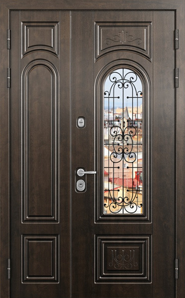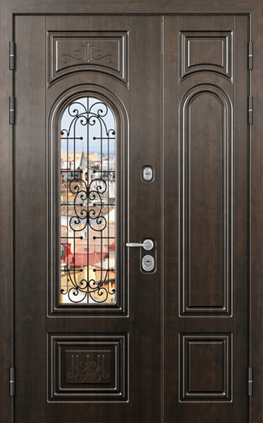 Двупольная стальная дверь со стеклопакетом и кованым узором №24 станет отличным выбором для тех, кто ценит не только безопасность, но и стиль. Внешняя и внутренняя отделка выполнены из МДФ, что придает двери элегантный и современный вид, а также обеспечивает высокую устойчивость к механическим повреждениям и износу. Стеклопакет и кованые элементы добавляют изысканности и уникальности, при этом сохраняя прочность конструкции. Двупольная стальная дверь со стеклопакетом и кованым узором №24 от производителя: быстрое изготовление и монтаж в Зеленограде, индивидуальные размеры, широкий выбор материалов и фурнитуры, официальная гарантия до 10 лет.