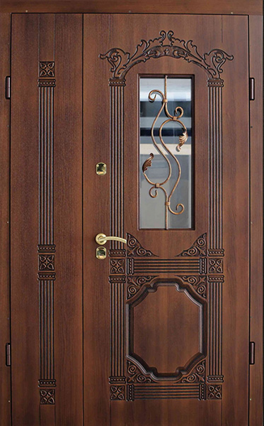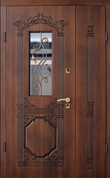 Уличная двухстворчатая дверь со стеклом и кованой решеткой №26 — это не только надежная защита для вашего дома, но и элемент, который подчеркнет его стиль и индивидуальность. Внешняя отделка из МДФ с ПВХ обеспечивает долговечность, устойчивость к внешним воздействиям и сохранение эстетического вида на долгое время. Добавление кованой решетки и стеклопакета придает двери элегантности, а также улучшает светопропускание, создавая комфортное освещение в вашем помещении. Уличная двухстворчатая дверь со стеклом и кованой решеткой №26 от производителя: быстрое изготовление и монтаж в Зеленограде, индивидуальные размеры, широкий выбор материалов и фурнитуры, официальная гарантия до 10 лет.