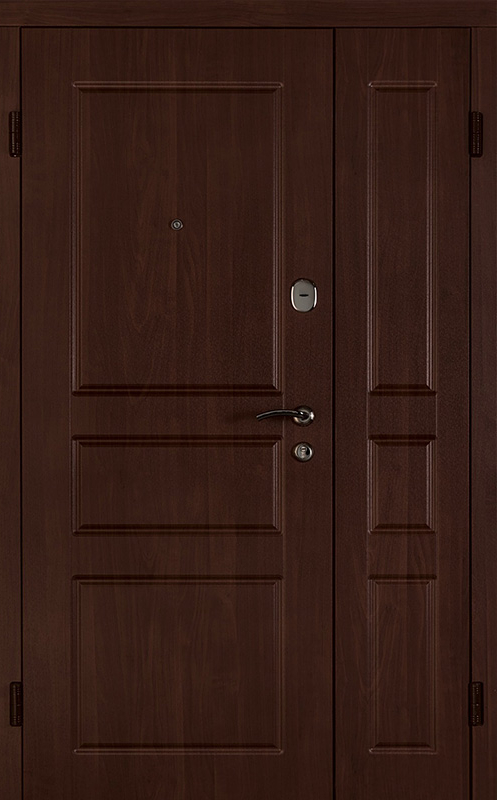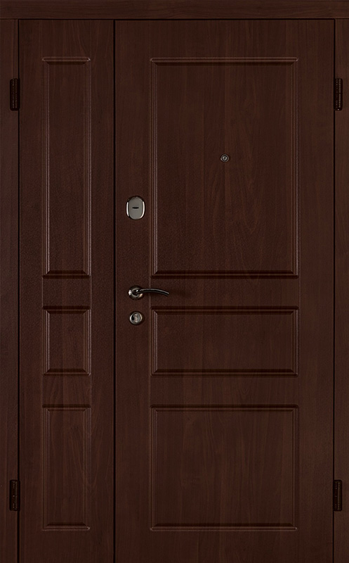 Коричневая входная полуторная дверь с филенчатой створкой №4 – это надежное и стильное решение для вашего дома или офиса. Внешняя и внутренняя отделка из МДФ с ПВХ обеспечивает долговечность и устойчивость к повреждениям, сохраняя при этом элегантный внешний вид. Прочные материалы конструкции, такие как профильная труба 50х25 мм и лист металла толщиной 2 мм, гарантируют стабильность и безопасность. Ребра жесткости из профильных труб 40х25 мм усиливают дверное полотно, а уплотнение с двумя контурами надежно защищает от внешних факторов. Несмотря на отсутствие терморазрыва, в двери реализованы терморазрывы в коробке и полотне, что помогает улучшить теплоизоляцию. Возможность выбора дополнительных опций, таких как шумоизоляция, делает эту дверь универсальной для различных условий эксплуатации. Коричневая входная полуторная дверь с филенчатой створкой №4 от производителя: быстрое изготовление и монтаж в Зеленограде, индивидуальные размеры, широкий выбор материалов и фурнитуры, официальная гарантия до 10 лет.