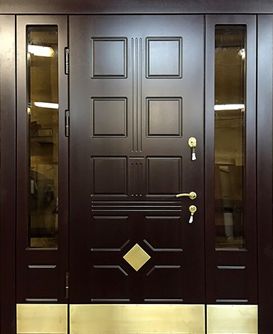 Натуральное дерево в отделке придаёт конструкции основательность и благородный внешний вид, а металлический каркас с листом стали толщиной 2 мм и системой ребер жёсткости обеспечивает надёжную защиту и долговечность. Входная дверь с остеклением №70 особенно востребована в частных домах и коттеджах, где важна не только безопасность, но и эстетика. Стеклянные элементы делают полотно визуально легче и наполняют прихожую естественным светом, при этом оставаясь частью прочной конструкции. Для комфорта предусмотрены два контура уплотнения, а терморазрыв в коробке и полотне защищает от промерзания и сохраняет тепло даже в сильные морозы. Итальянские замки Cisa цилиндрового и сувальдного типа дополняют высокий уровень безопасности. Возможность добавить кованые элементы, зеркало или стеклопакет позволяет адаптировать модель под архитектуру дома, подчёркивая индивидуальность и вкус владельцев. Входная дверь с остеклением №70 от производителя: быстрое изготовление и монтаж в Зеленограде, индивидуальные размеры, широкий выбор материалов и фурнитуры, официальная гарантия до 10 лет.