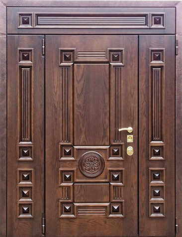 Металлическая дверь в широкий проем с боковыми фрамугами №26 — это идеальное решение для тех, кто ценит простор и свет в своем частном доме или коттедже. Массив дерева в отделке придает двери изысканный вид, создавая теплую атмосферу в вашем доме. Прочная конструкция из профильной трубы и металлического листа толщиной 2 мм обеспечивает долговечность, а ребра жесткости делают ее еще более устойчивой к внешним воздействиям. Боковые фрамуги добавляют дверям не только эстетической привлекательности, но и позволяют ввести больше света в помещение. Терморазрыв в коробке и полотне защищает от перепадов температуры, обеспечивая теплоизоляцию и долговечность. Металлическая дверь в широкий проем с боковыми фрамугами №26 от производителя: быстрое изготовление и монтаж в Зеленограде, индивидуальные размеры, широкий выбор материалов и фурнитуры, официальная гарантия до 10 лет.
