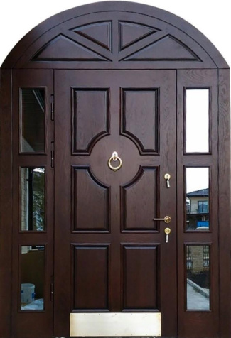 Дверь входная со стеклом в частный дом №382 сочетает массивность металла и изящество натурального дерева, создавая надежный и одновременно представительный парадный вход. Каркас и полотно выполнены из стальной профильной трубы с листом металла толщиной 2 мм и усилены ребрами жесткости, что обеспечивает долговечность и прочность конструкции. Облицовка массивом дерева придает двери благородный внешний вид, устойчивый к царапинам и воздействию времени, а также гармонично вписывается в архитектуру частного дома или коттеджа. Вставка из стекла делает интерьер светлее, подчеркивает индивидуальность фасада и визуально облегчает крупное полотно. Два контура уплотнителей защищают от сквозняков и влаги, а встроенные блокираторы повышают надежность. Такая дверь становится не просто функциональным элементом, а настоящим украшением высокого входа. Высокая входная дверь со стеклом в частный дом №15 от производителя: быстрое изготовление и монтаж в Зеленограде, индивидуальные размеры, широкий выбор материалов и фурнитуры, официальная гарантия до 10 лет.