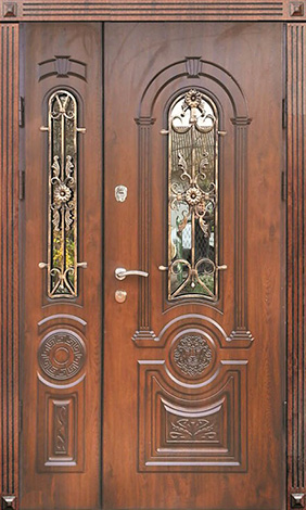 Эффектная дверь входная с окном №337 создана для парадных решений в коттеджах и частных домах, где важен не только уровень безопасности, но и выразительность архитектурного облика. Прочный каркас из стальной профильной трубы с листом металла толщиной 2 мм и системой ребер жесткости обеспечивает надежность конструкции, а отделка массивом дерева придает ей теплый и представительный вид. Натуральное дерево отличается стойкостью к царапинам и ударам, долго сохраняет форму и цвет, что делает дверь практичной для эксплуатации на улице. Встроенное окно добавляет естественного света и визуально облегчает массивное полотно, создавая гармонию между защитой и эстетикой. Двойной контур уплотнителей препятствует проникновению холода и влаги, блокираторы усиливают безопасность. Такая высокая дверь становится не только защитой, но и ярким акцентом фасада, подчеркивающим статус хозяев дома. Дверь в частный дом входная с окном №23 от производителя: быстрое изготовление и монтаж в Зеленограде, индивидуальные размеры, широкий выбор материалов и фурнитуры, официальная гарантия до 10 лет.