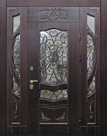Кованая дверь под старину для частного дома №38 — это идеальное решение для тех, кто ценит уникальный стиль и надёжность. Изготовленная из массива дуба как снаружи, так и внутри, она привнесёт атмосферу уюта и элегантности в ваш дом или коттедж. Эта дверь с элементами ковки, выполненная на основе прочной профильной трубы, представляет собой сочетание классического дизайна и современной функциональности. Она прекрасно подходит для установки в парадной зоне, создавая неповторимый акцент в интерьере. С механической точки зрения дверь оснащена двумя замками Cisa с четырьмя и пятью ригелями, обеспечивающими надёжную защиту. Стойкость к внешним воздействиям и долговечность отделки гарантируют сохранение первоначального вида в течение долгого времени. Кованая дверь под старину для частного дома №38 от производителя: быстрое изготовление и монтаж в Зеленограде, индивидуальные размеры, широкий выбор материалов и фурнитуры, официальная гарантия до 10 лет.