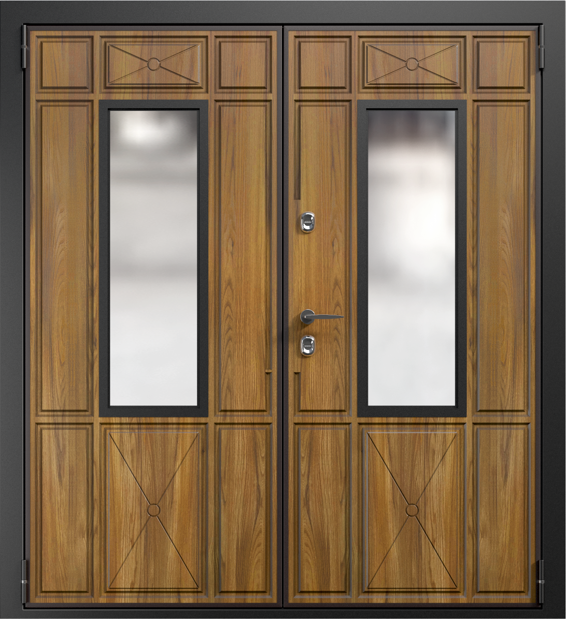 Двустворчатая МДФ дверь с окном №3 идеально подойдёт для установки в просторных домах, где требуется не только надёжная защита, но и стильный внешний вид. Внешняя отделка из панелей МДФ ПВХ придаёт двери элегантность, а окно добавляет лёгкости и позволяет естественному свету проникать в помещение. Конструкция из профильной трубы 50x25 мм и металла толщиной 2 мм обеспечивает высокую прочность, а блокираторы и качественные замки гарантируют безопасность. Уплотнение с двумя контурами эффективно защищает от шума и холода, создавая комфорт в доме. Несмотря на отсутствие терморазрыва, дверь остаётся надёжным и долговечным решением для вашего интерьера, с возможностью индивидуализировать её с помощью дополнительных элементов, таких как стеклопакеты или зеркала. Двустворчатая МДФ дверь с окном №3 от производителя: быстрое изготовление и монтаж в Зеленограде, индивидуальные размеры, широкий выбор материалов и фурнитуры, официальная гарантия до 10 лет.
