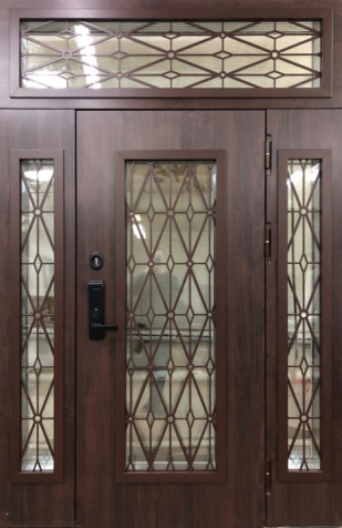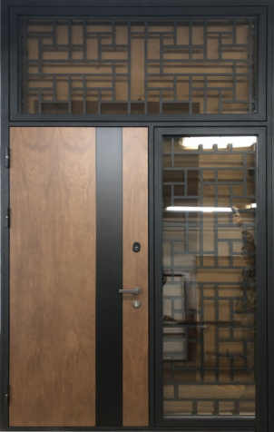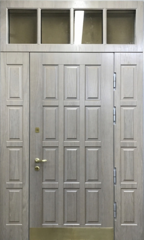 Если дверной проём существенно выше нормы (например, 2,5–3 метра), применяется верхняя вставка – фрамуга. Фрамуга представляет собой неподвижную секцию над дверью, заполняющую лишнее пространство. Она может быть глухой (в едином стиле с полотном) либо остеклённой. Такой приём позволяет установить высокие входные металлические двери, не утяжеляя само полотно и сохраняя правильные пропорции конструкции.