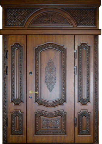 Высокие входные двери премиум-класса обычно оснащаются усиленными замками и несколькими контурами уплотнения. Для уличных моделей (в частных домах) обязательно применяются утеплители и влагостойкое покрытие, ведь площадь такой двери больше, а значит, теплопотери через неё выше. Часто нестандартно высокие двери оформляют панелями МДФ с фигурной фрезеровкой, декоративной ковкой или стеклопакетами — всё это придаёт парадный вид, особенно актуальный для загородного дома или коттеджа.